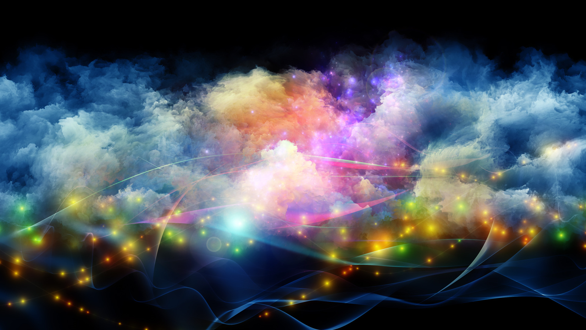 Назад к обои свет, линии, краски, дым, огоньки, яркость