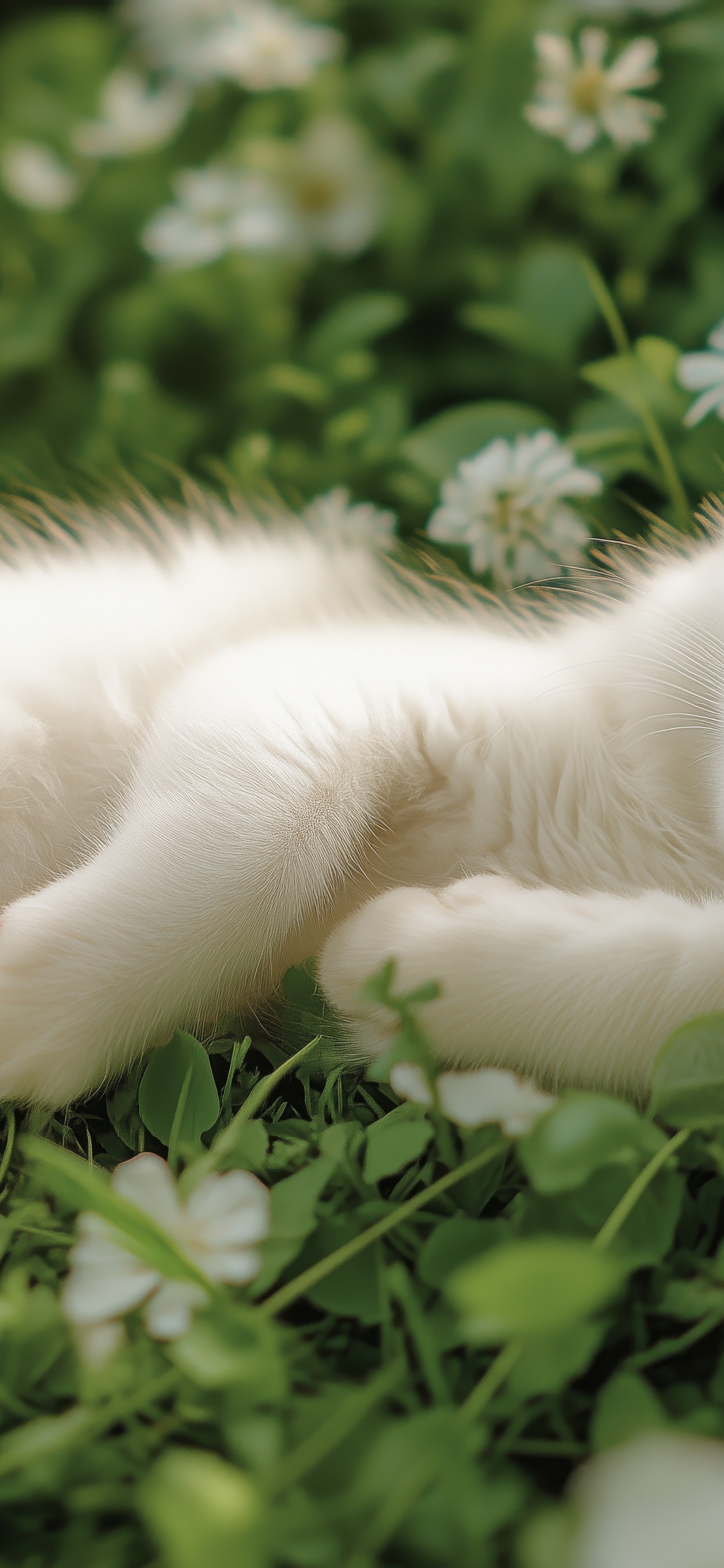 Назад к обои зелень, кошка, белый, лето, взгляд, цветы, поза, поляна