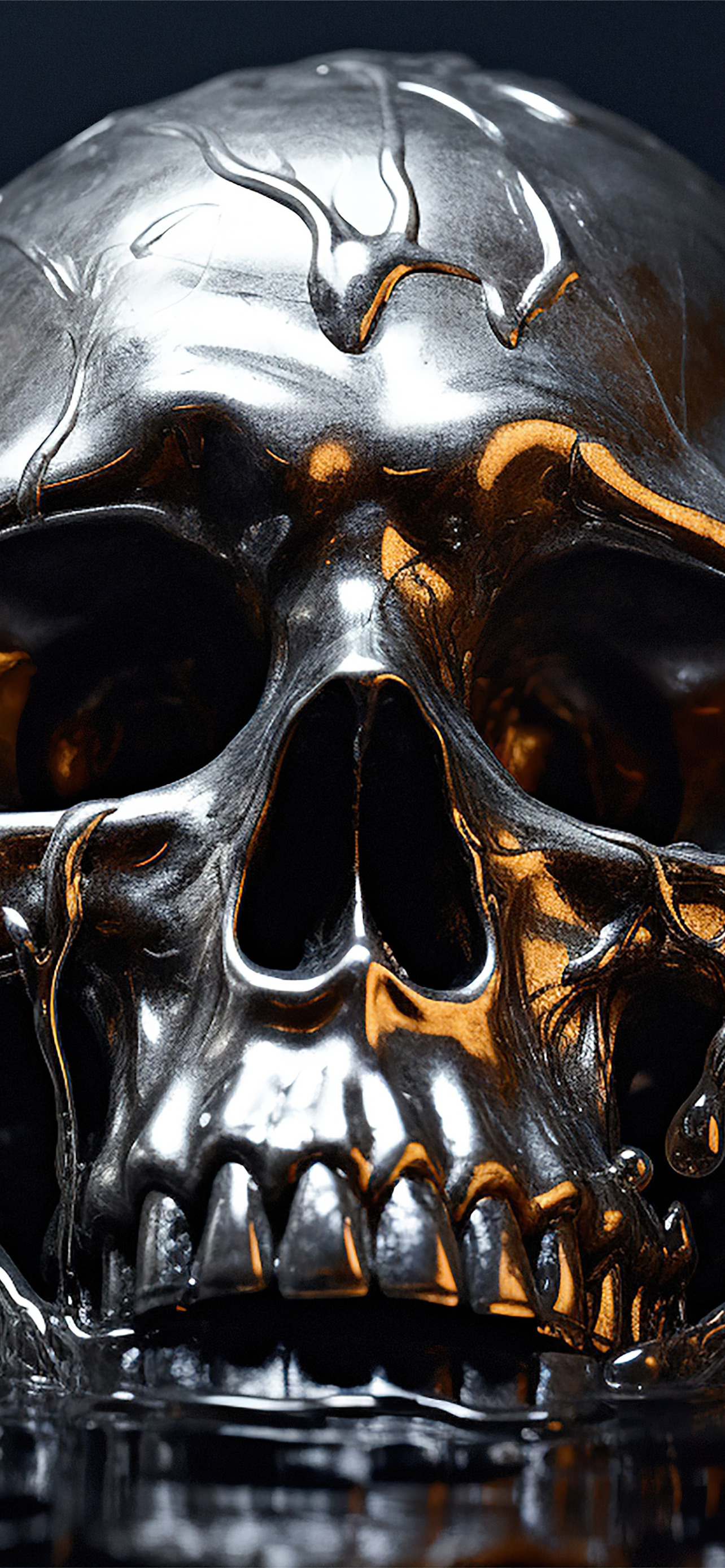 Назад к обои skull, melting, spooky, dark background, AI Art