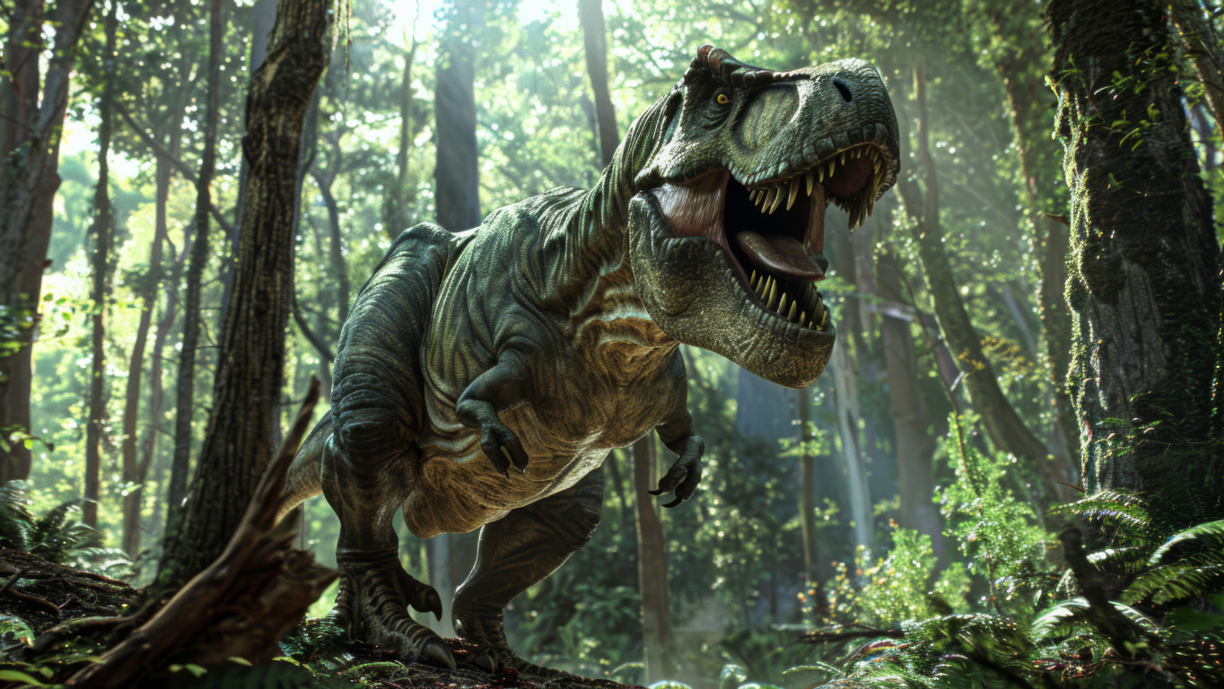 Назад к обои морда, деревья, животное, динозавр, хищник, зубы, оскал, Тираннозавр