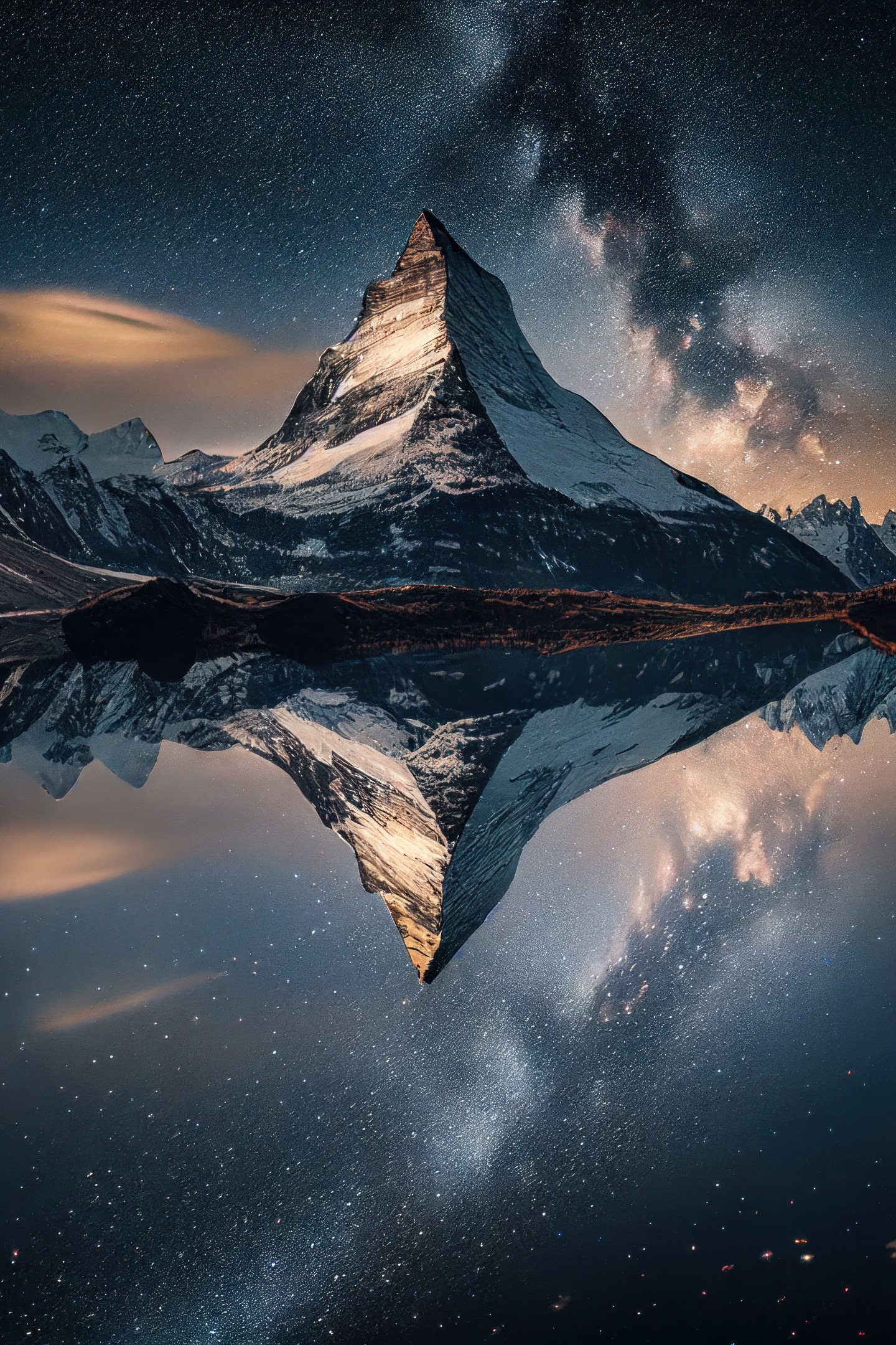 Назад к обои снег, пейзаж, горы, природа, отражение, рендеринг, арт, водоем