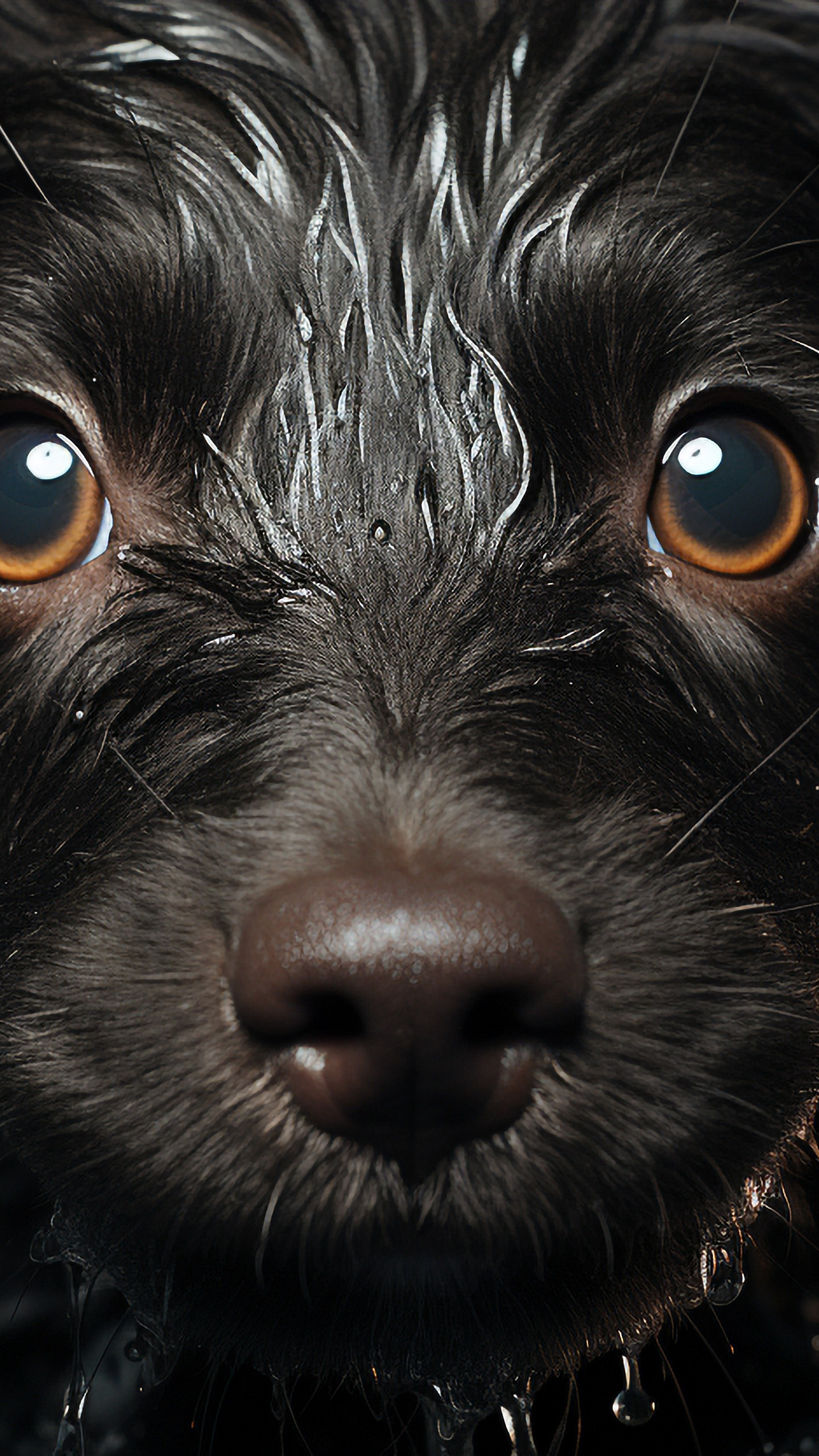 Назад к обои взгляд, собака, мокрая, щенок, мордашка, крупным планом, цифровое искусство, ИИ-арт