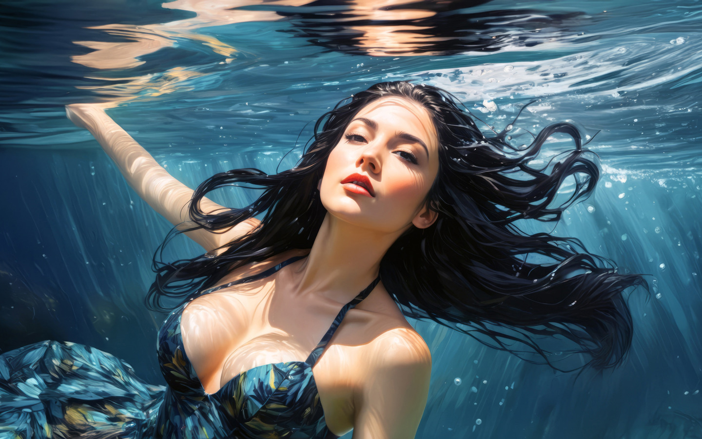 Назад к обои грудь, взгляд, вода, девушка, лицо, поза, брюнетка, купание