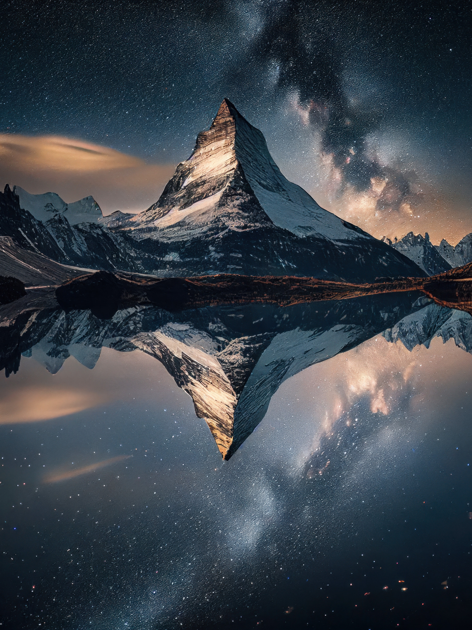 снег, пейзаж, горы, природа, отражение, рендеринг, арт, водоем