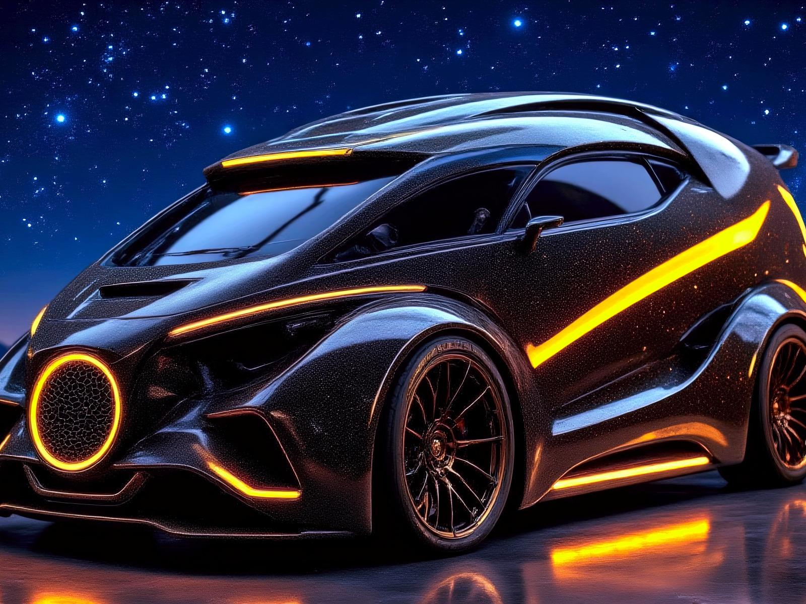 звезды, ночь, digital art, цифровое искусство, Футуристический автомобиль, искуственный интеллект, Stability AI, AI Art