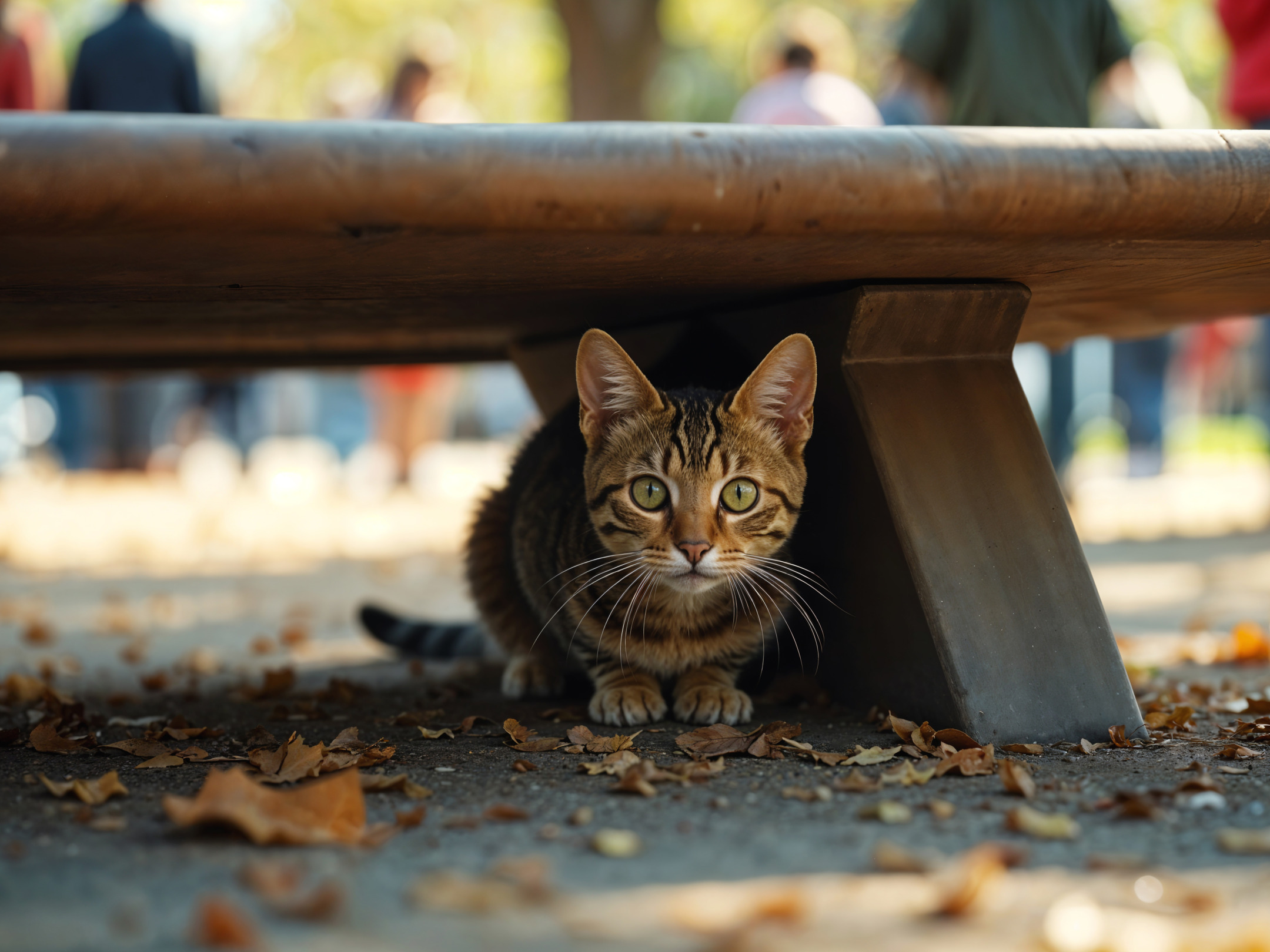 Назад к обои осень, кошка, взгляд, скамейка, поза, парк, листва, человек