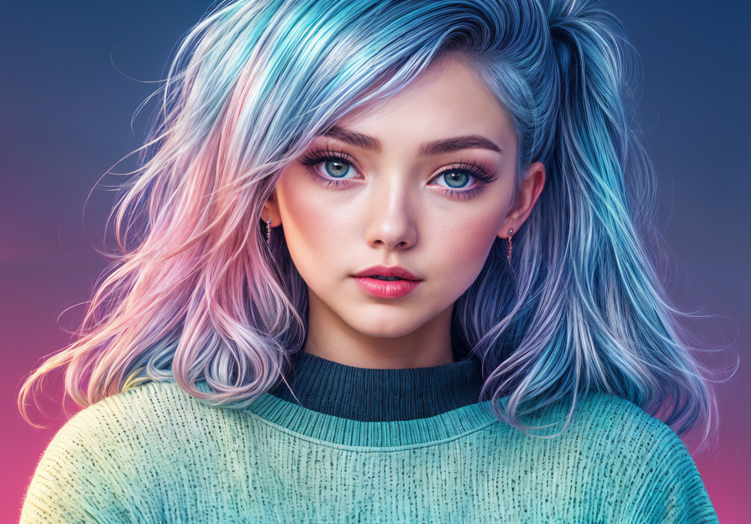 fantasy, blue eyes, Asian girl, blue hair, AI Art