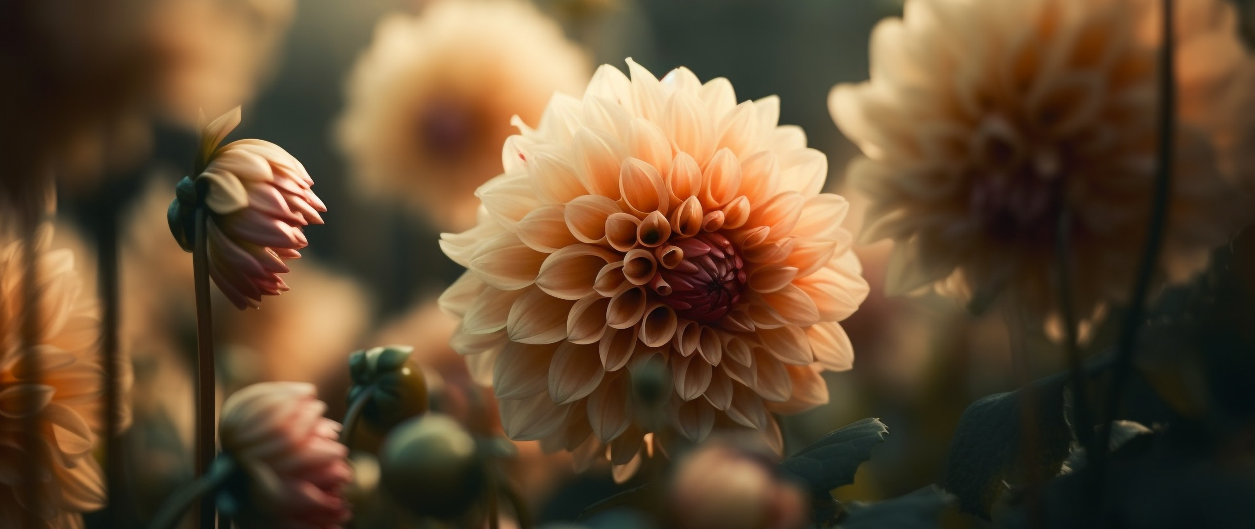 Назад к обои свет, цветы, сад, кремовый, бутоны, боке, композиция, георгины