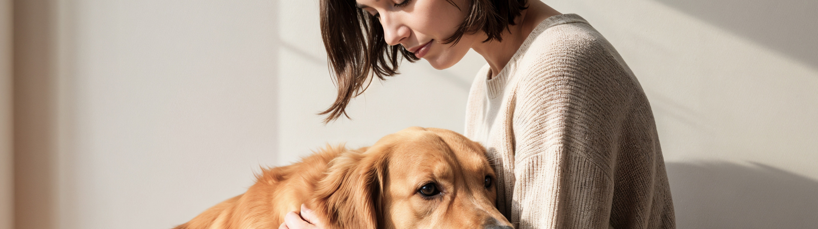 Назад к обои девушка, свет, друг, стена, собака, брюнетка, рыжая, ласка