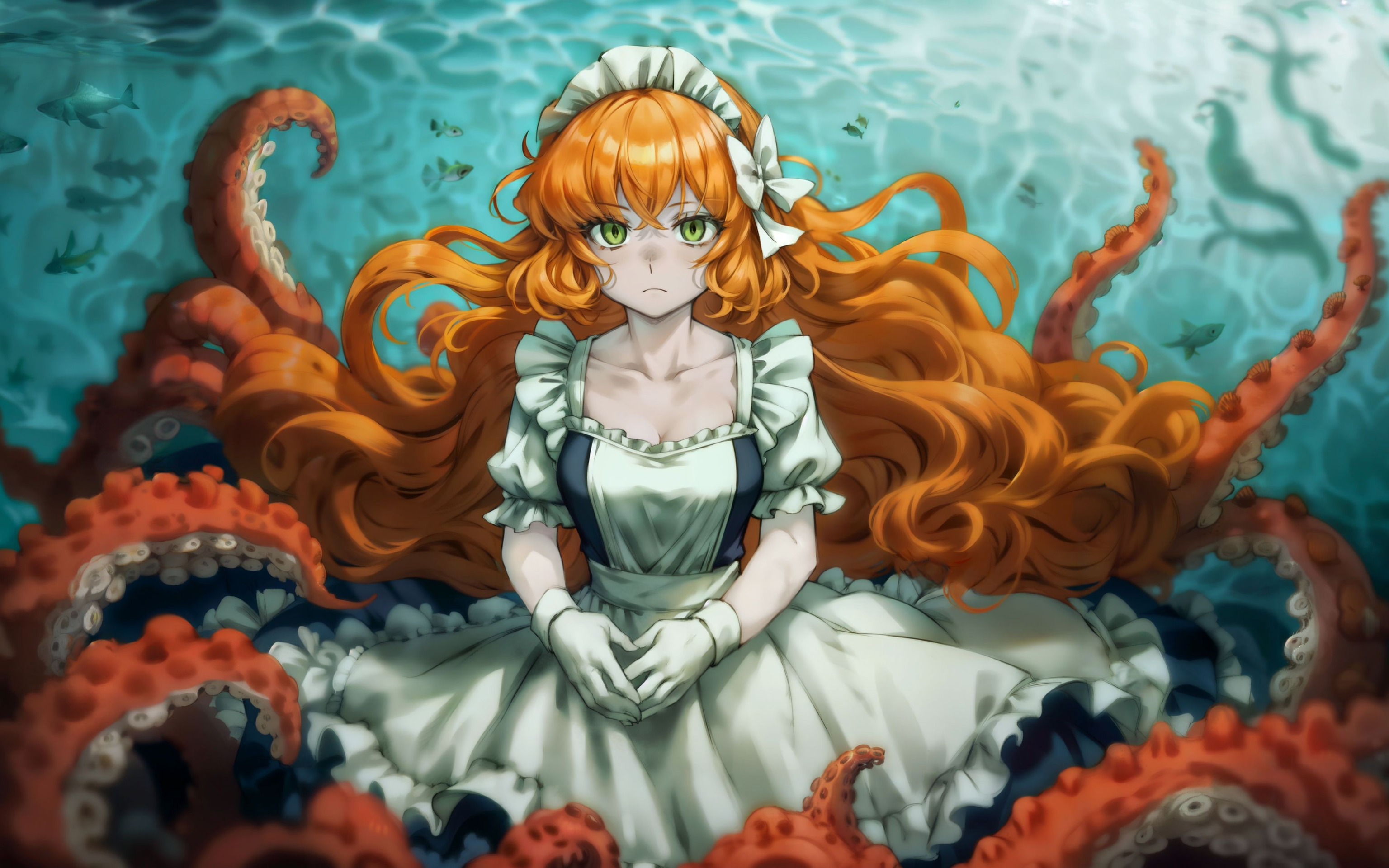 Назад к обои девушка, аниме, осьминог