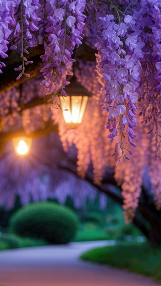 Назад к обои свет, цветы, ночь, ветки, парк, вечер, сад, фонари