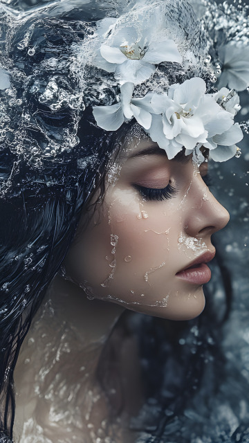 Назад к обои вода, девушка, капли, цветы, брызги, лицо, поза, портрет