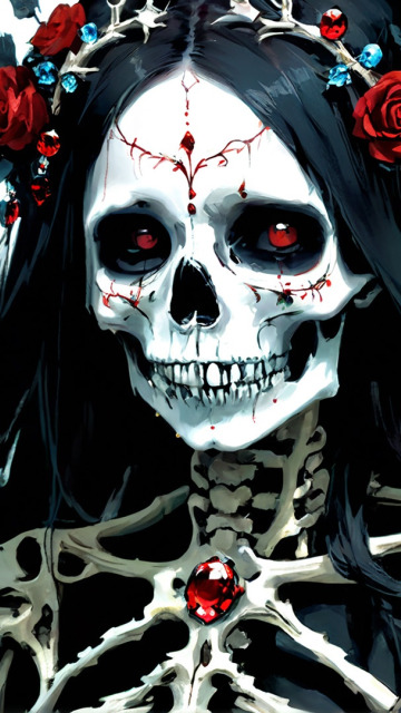 Назад к обои девушка, кости, скелет