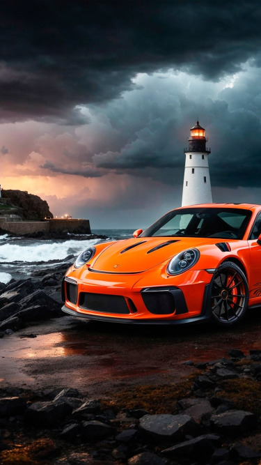 Назад к обои море, машина, авто, маяк, остров, Porsche 911, Porsche 911 GT3 RS, НЕЙРОСЕТЬ