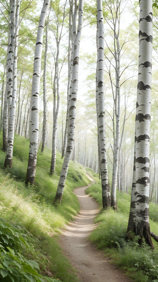 Назад к обои лес, деревья, природа, склон, берёзы, роща, березовая роща, ИИ-арт
