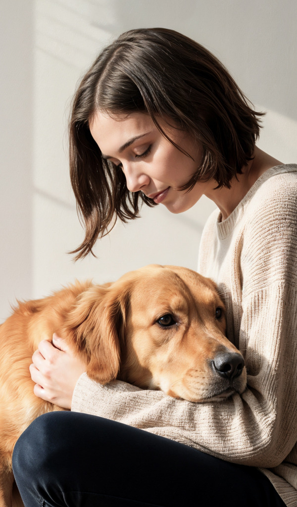 девушка, свет, друг, стена, собака, брюнетка, рыжая, ласка