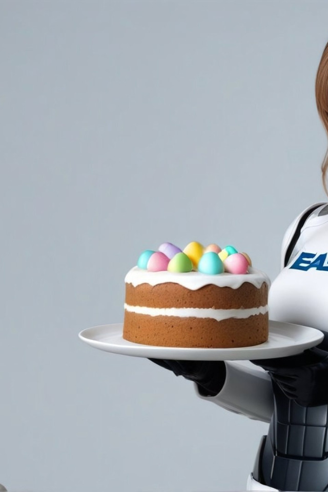 Назад к обои девушка, еда, Пасха, сервис