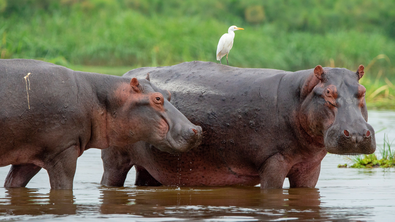 Назад к обои вода, птица, две, купание, пара, бегемот, водоем, цапля