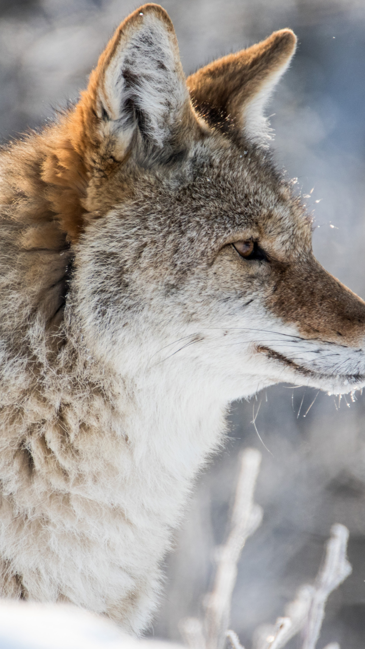 Назад к обои зима, снег, портрет, профиль, койот, луговой волк