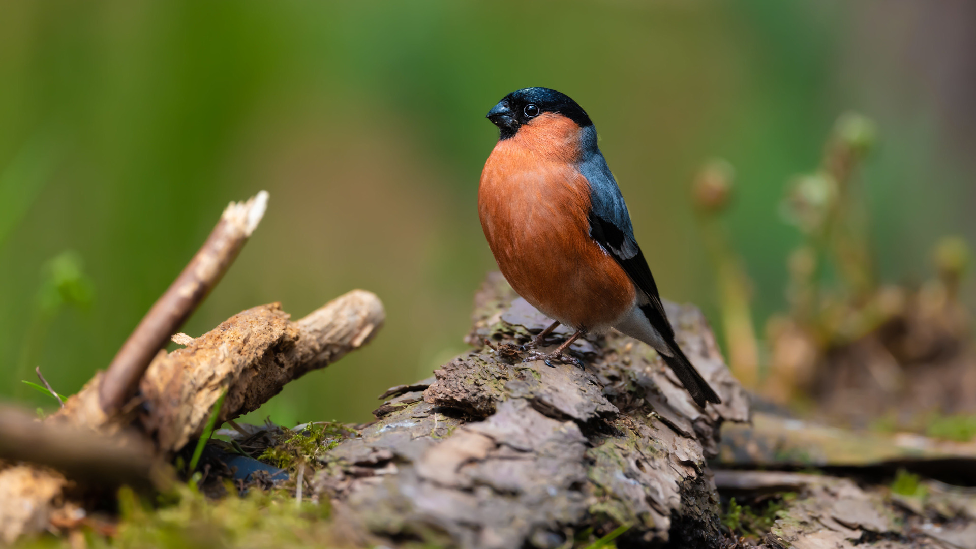 Назад к обои птица, кора, снегирь
