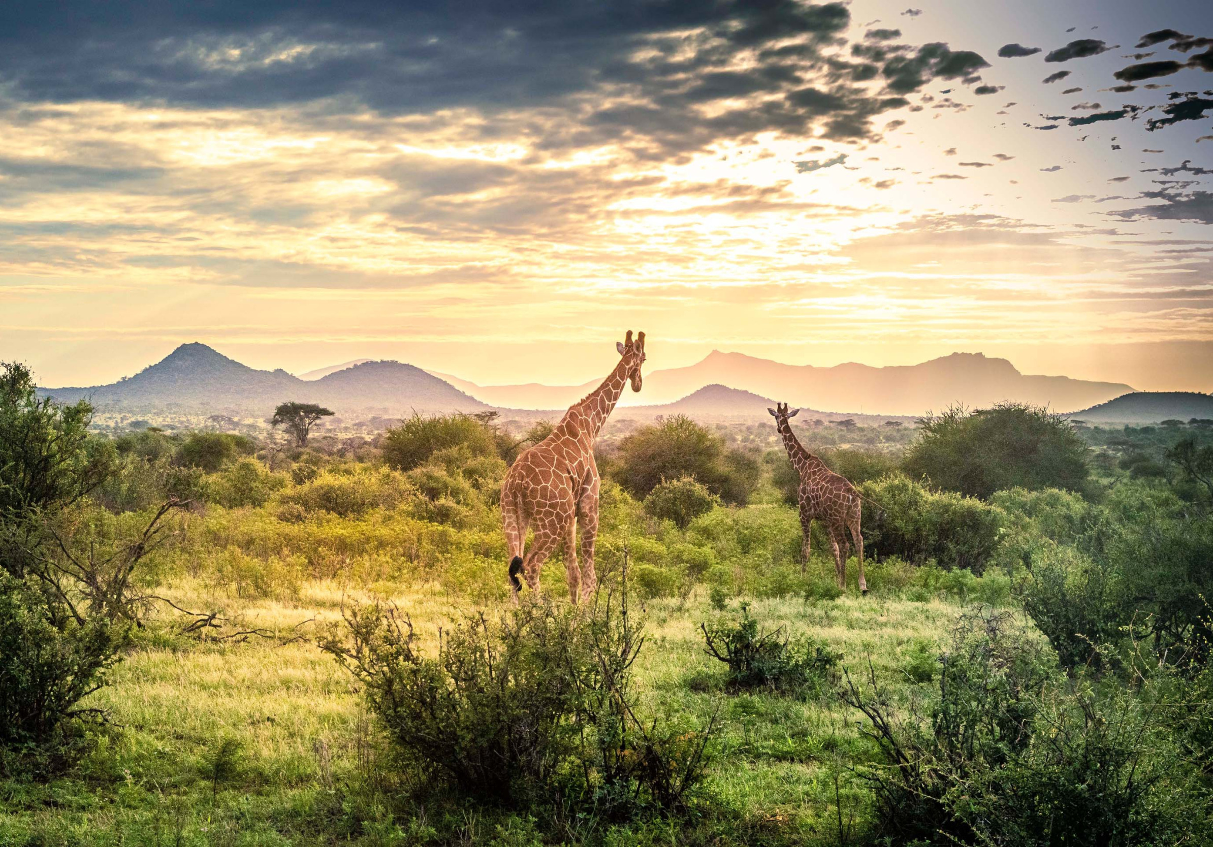 Назад к обои небо, облака, закат, природа, жираф, кустарник