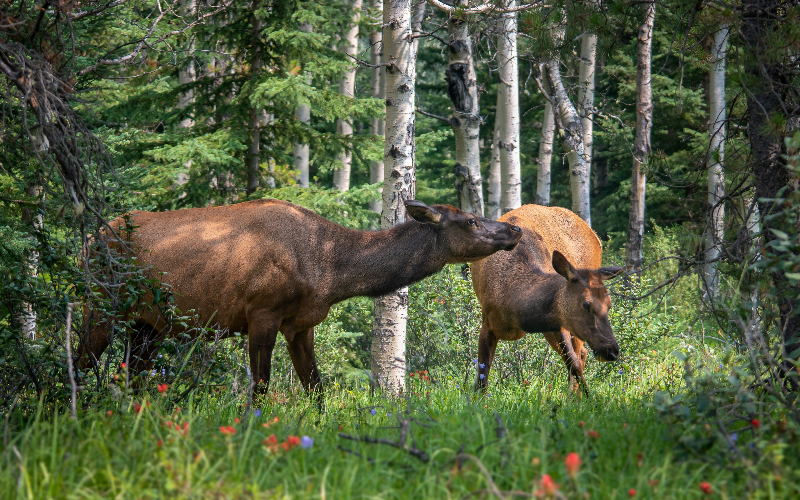 Назад к обои лес, лето, трава, деревья, ветки, поза, олень, пара