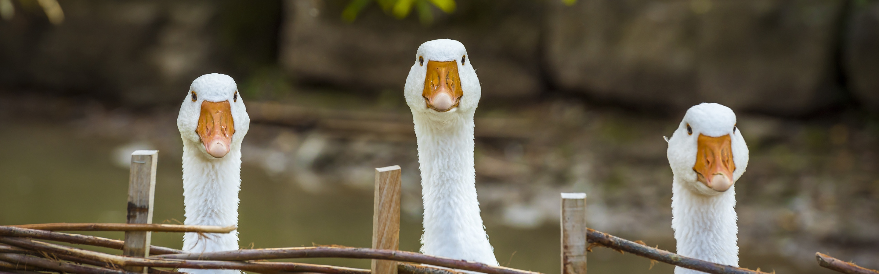 Назад к обои взгляд, птица, забор, двор, белые, трио, гуси, плетень