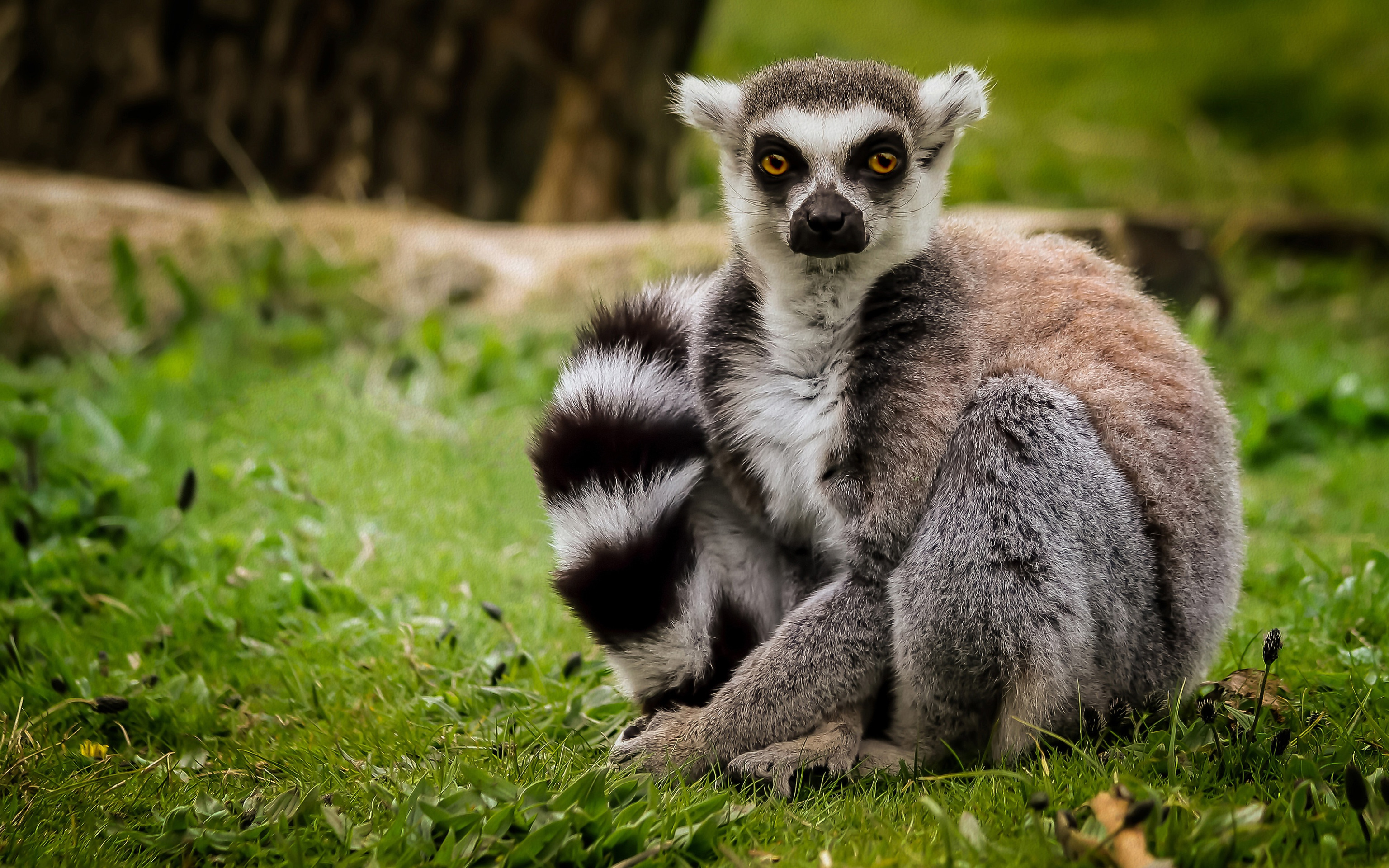 Назад к обои трава, взгляд, лемур, кошачий лемур, катта