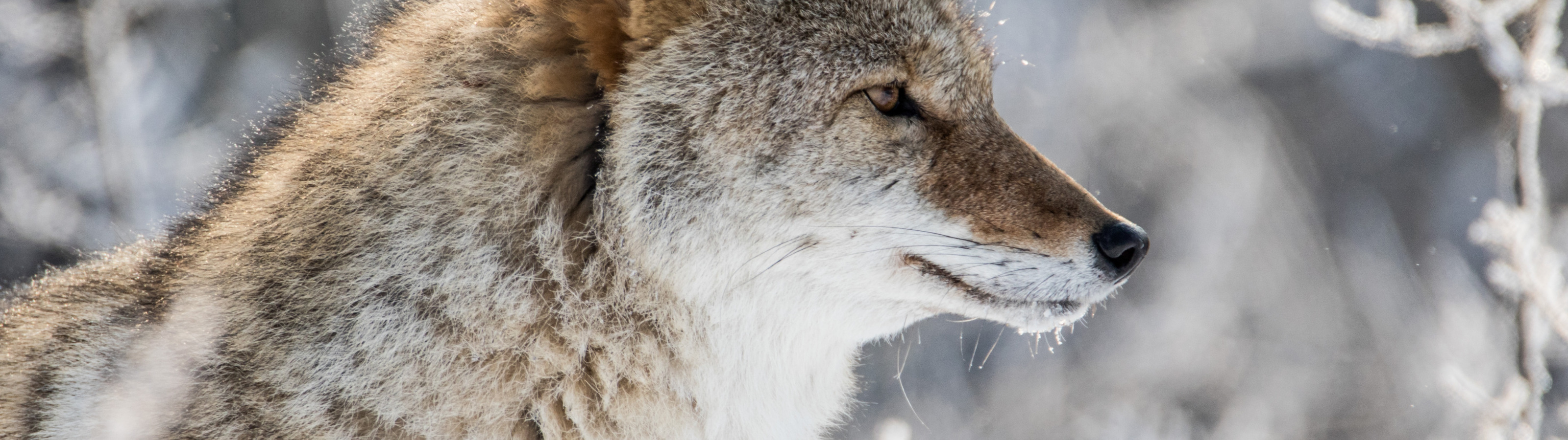 Назад к обои зима, снег, портрет, профиль, койот, луговой волк