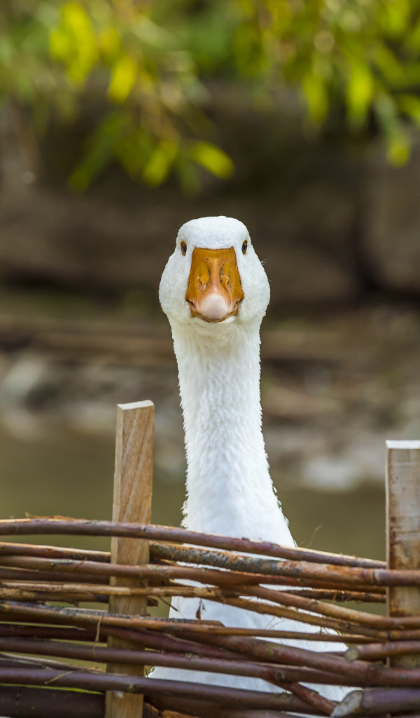взгляд, птица, забор, двор, белые, трио, гуси, плетень