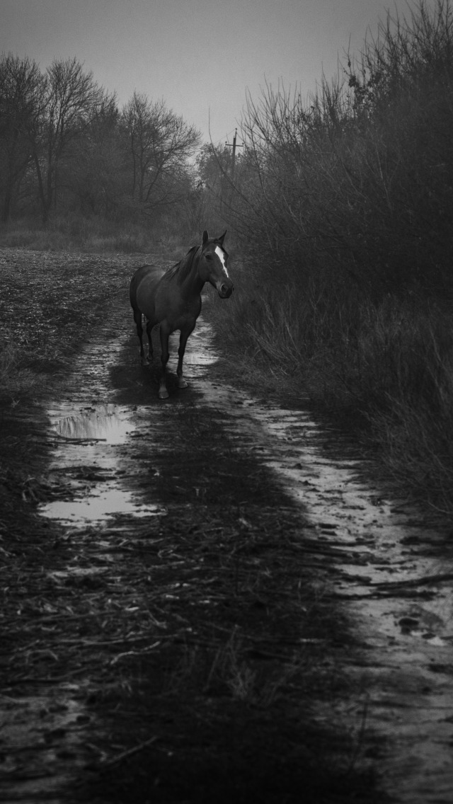 осень, конь, лошадь, после дождя, autumn, наблюдение, слякоть, преследование