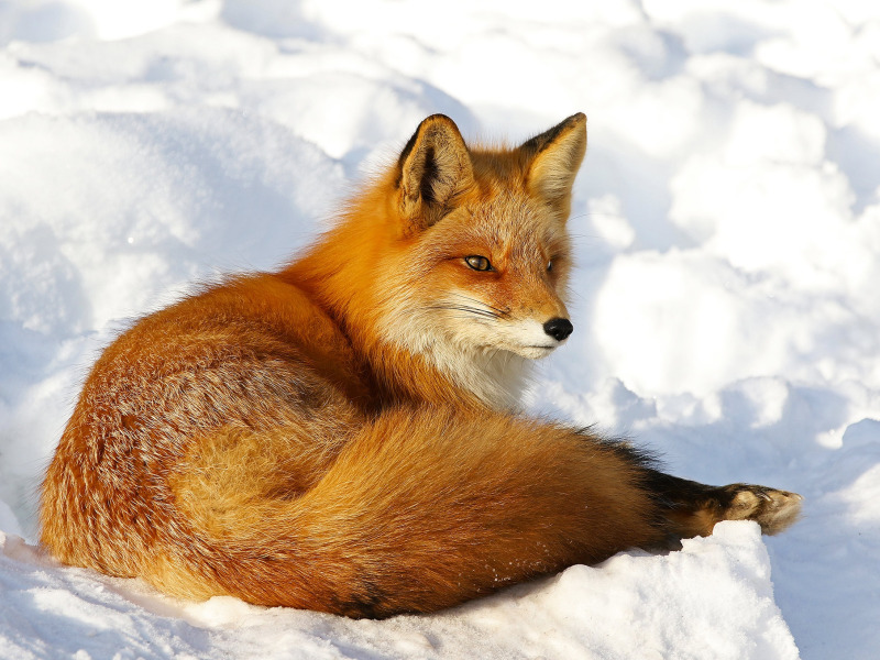 Назад к обои зима, взгляд, морда, снег, поза, лиса, хвост, сугробы