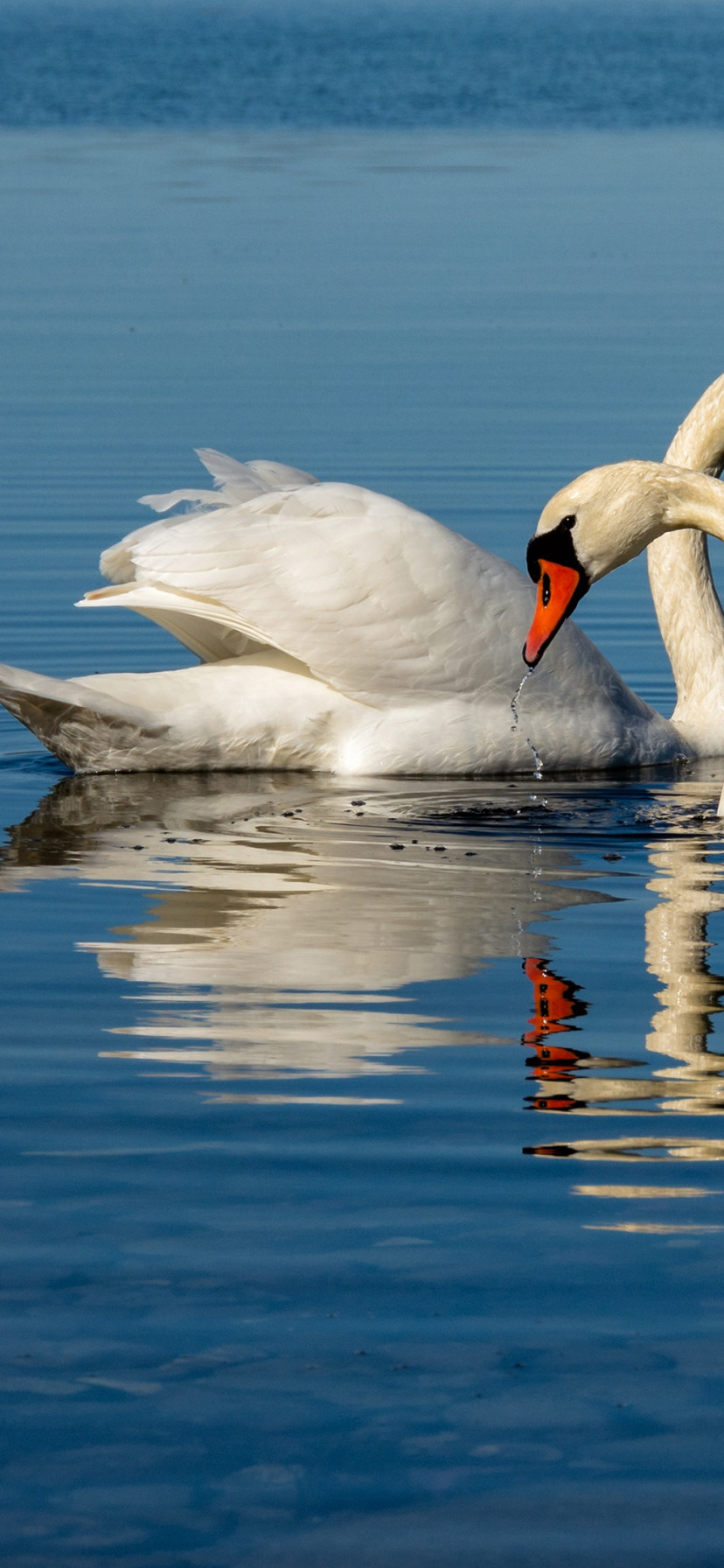 Назад к обои поза, отражение, птица, две, пара, белые, дуэт, лебеди