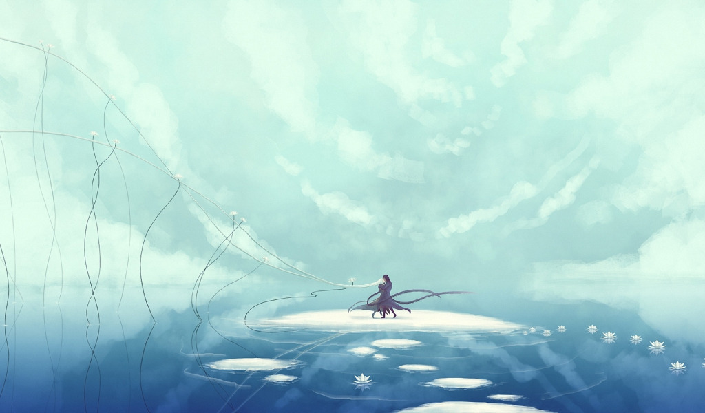 Назад к обои девушка, цветы, остров, танец, лотос, объятия, парень