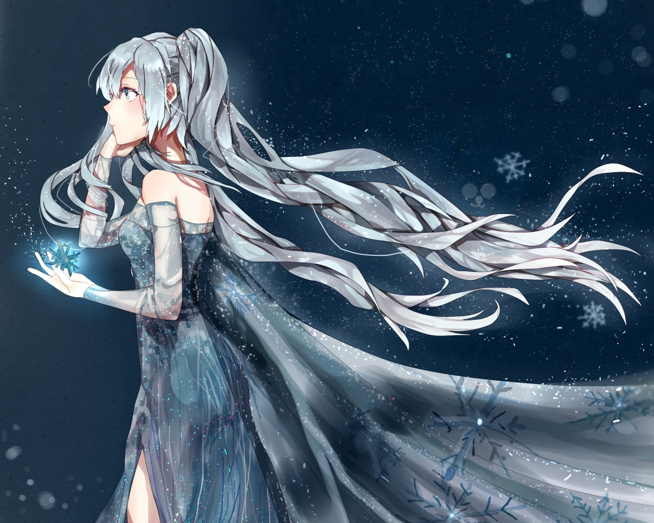 девушка, снежинки, аниме, арт, Frozen, vocaloid, hatsune miku, nadinehuifu