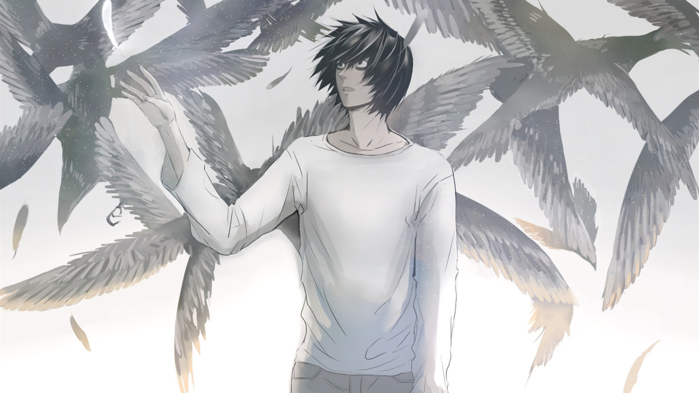 Назад к обои крылья, перья, парень, Death Note, Тетрадь Смерти