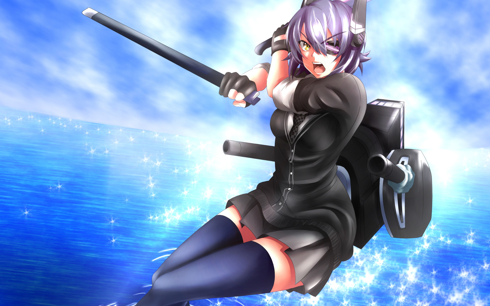 Назад к обои море, взгляд, девушка, оружие, злость, повязка, жест, art