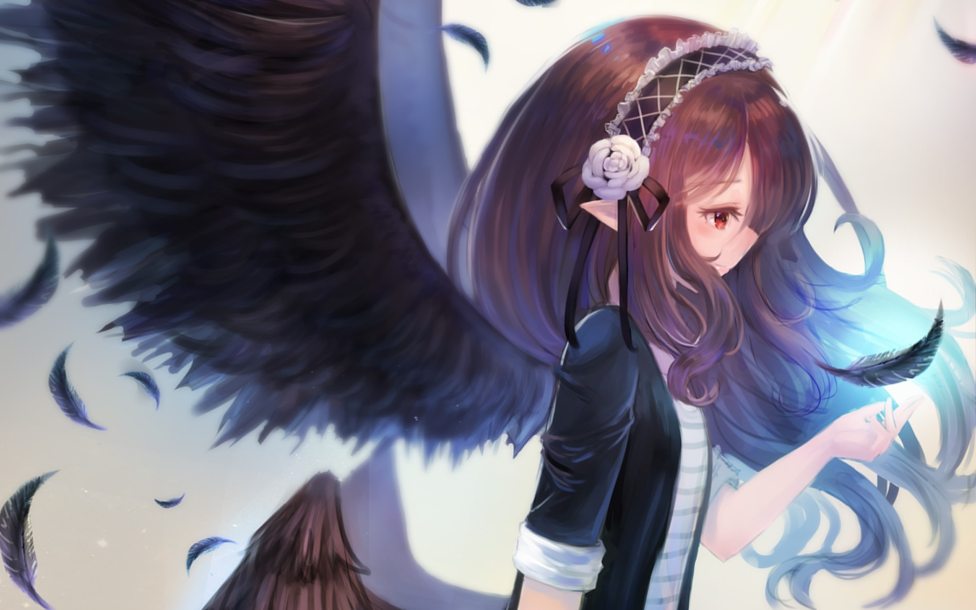 Назад к обои девушка, магия, крылья, ангел, аниме, перья, арт, zonekiller10