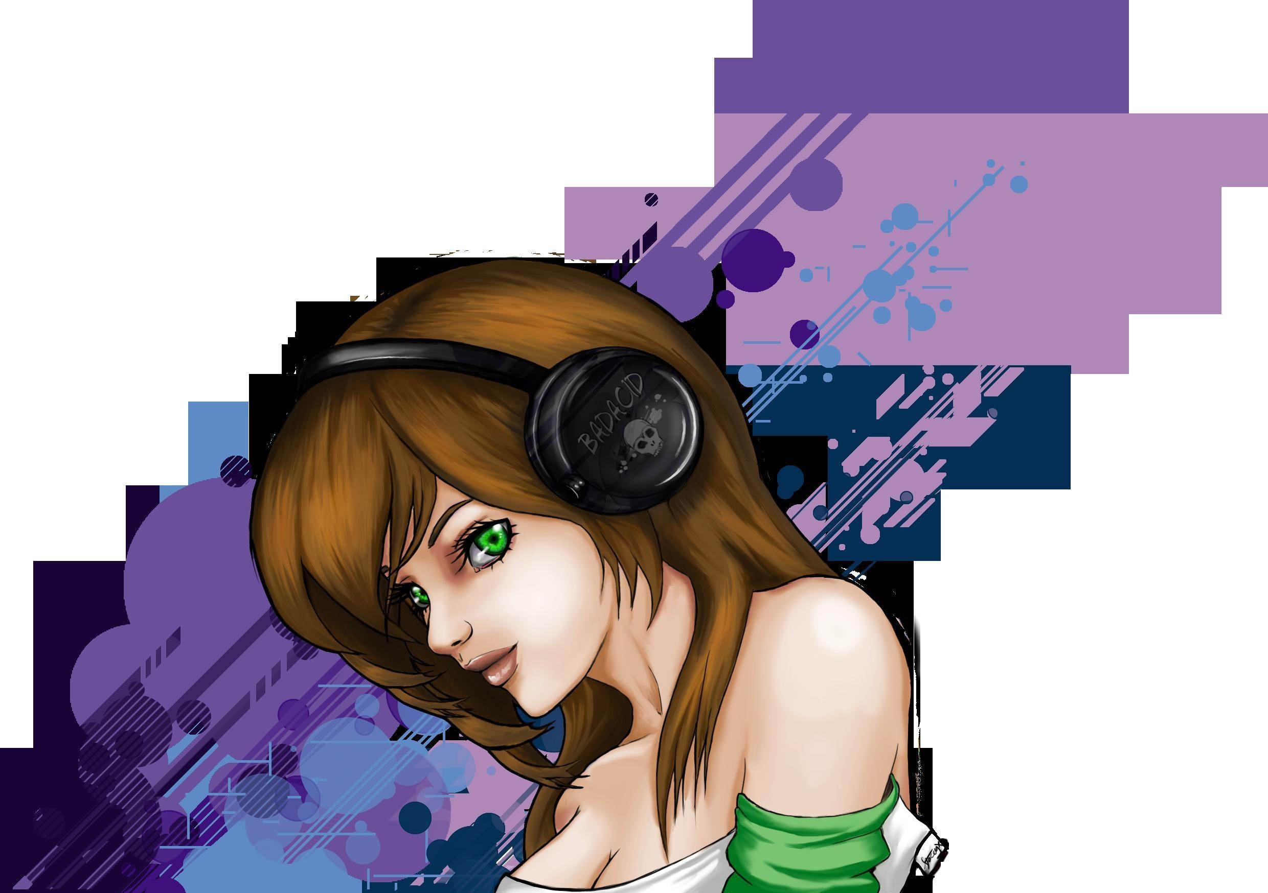 Назад к обои девушка, музыка, фон, волосы, череп, наушники, арт, зеленые глаза
