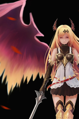 Назад к обои взгляд, девушка, оружие, фон, злость, крылья, art, caeruleus