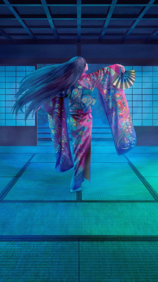 Назад к обои девушка, ночь, танец, веер, юката, art, erhu