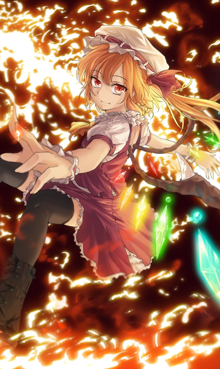 Назад к обои взгляд, девушка, огни, улыбка, пламя, магия, touhou, art