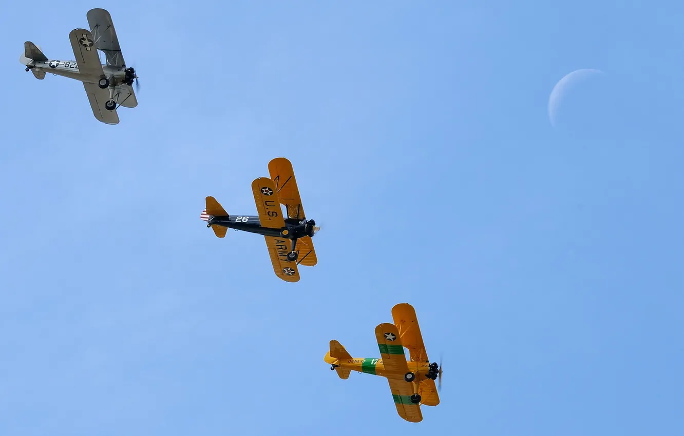 Небо, самолёт, boeing pt17 stearman обои на телефон (фото, картинки)