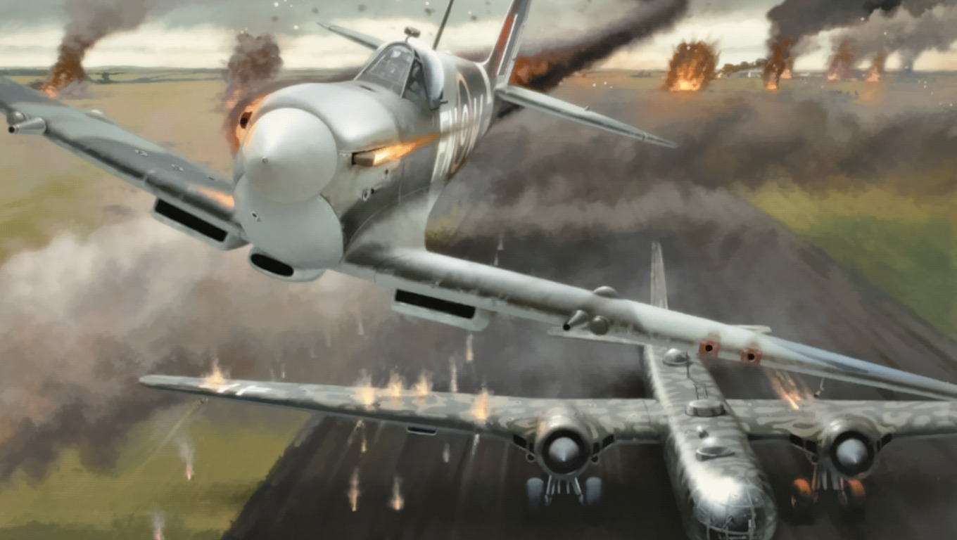 Назад к обои war, art, airplane, Spitfire, painting, WW2, Attack, Heinkel He 177