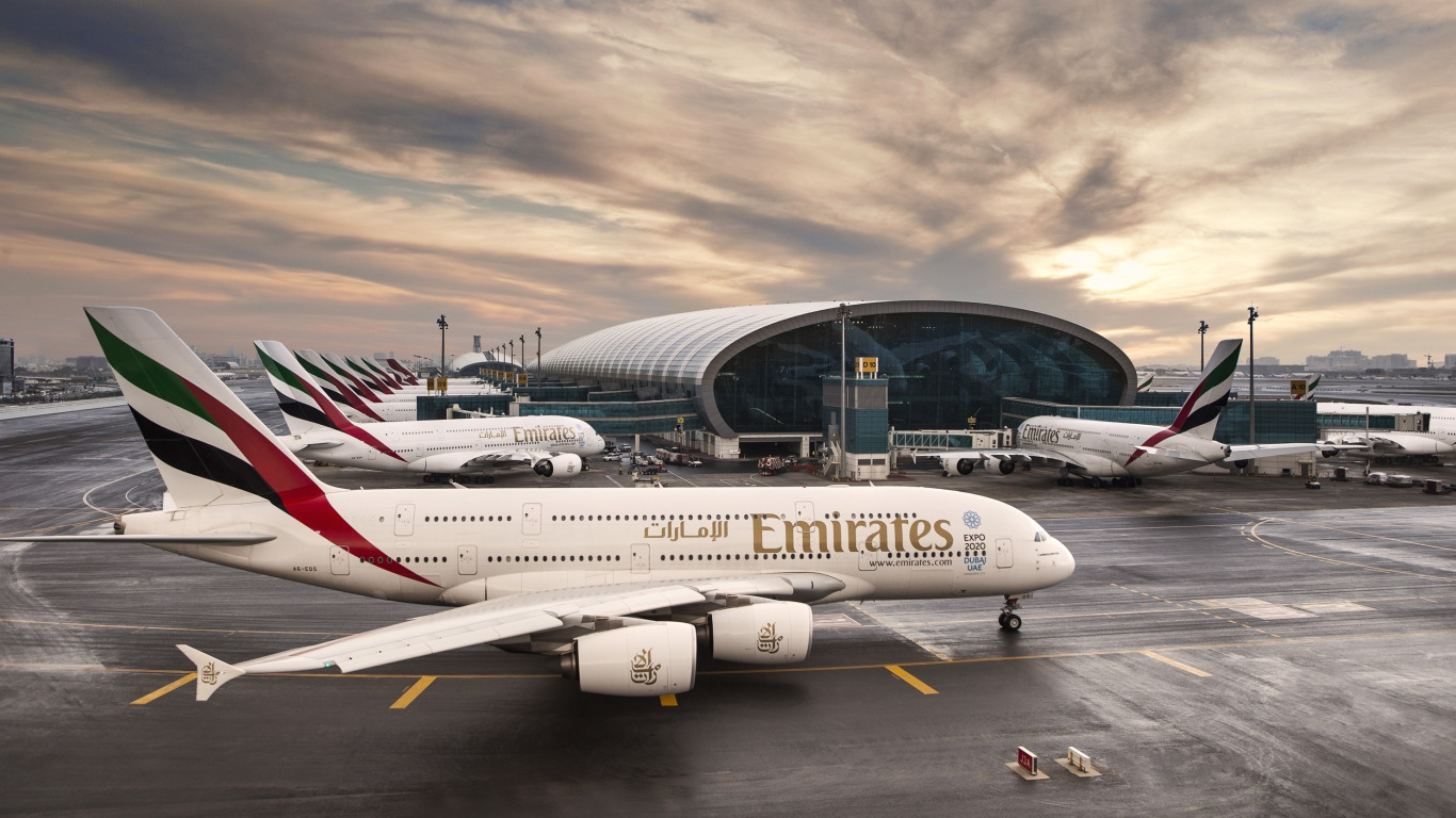 Назад к обои небо, облака, восход, здания, аэропорт, Дубай, самолёт, Dubai