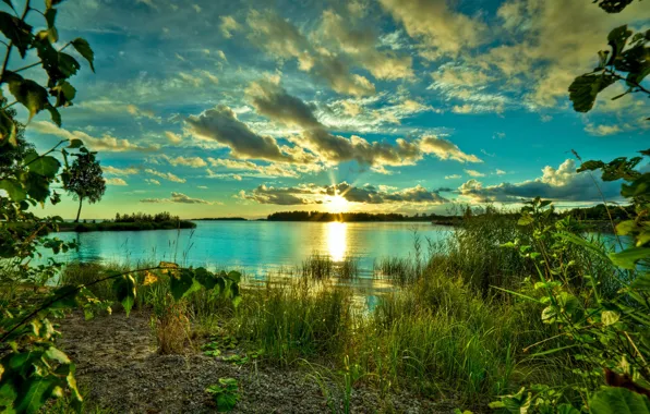 Зелень, трава, природа, тень, даль, силуэт, водоем, комок обои на телефон (фото, картинки)