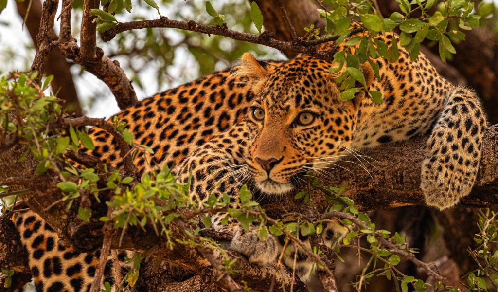 деревья, ветки, леопард