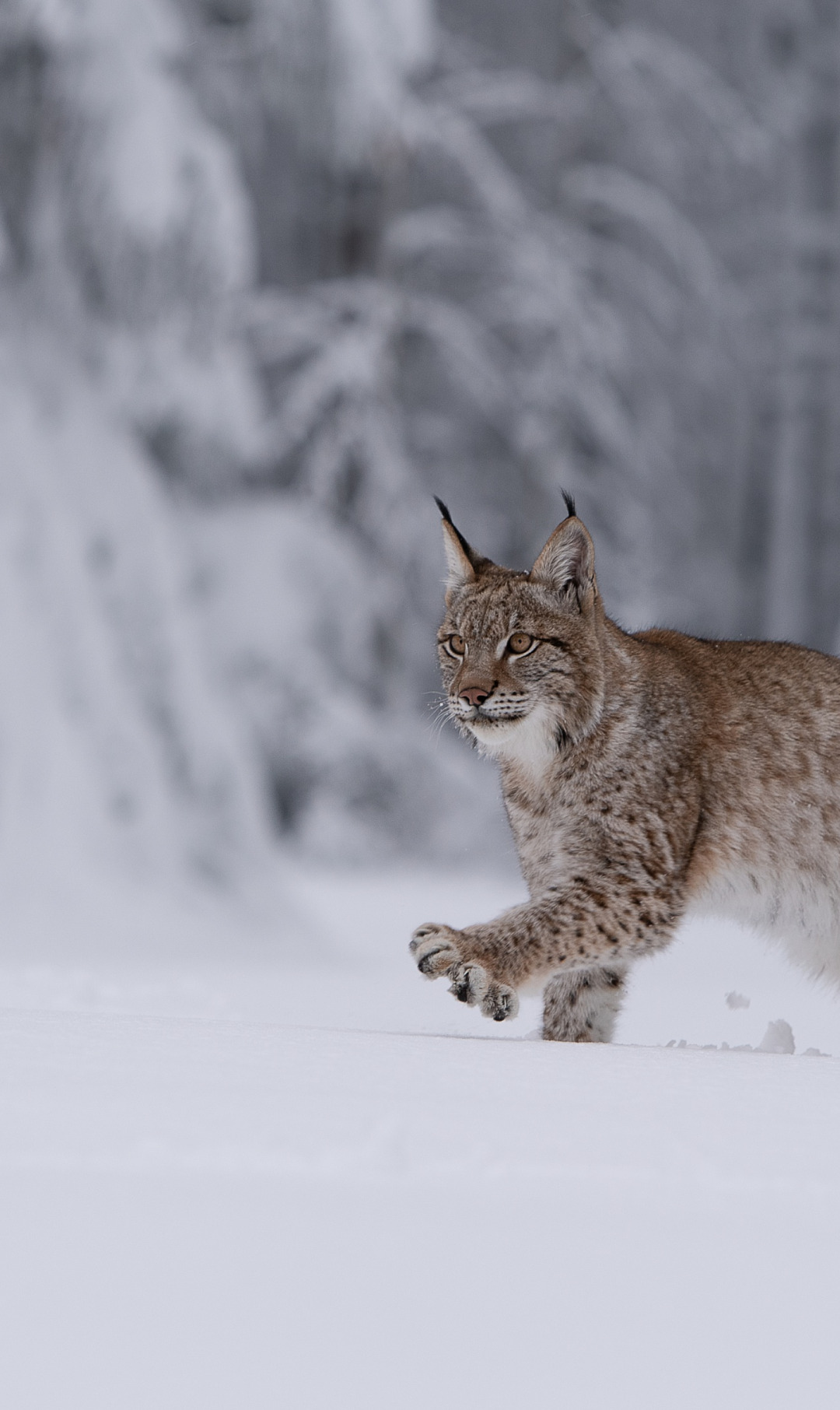 Назад к обои зима, лес, снег, ели, сугробы, рысь, крадется