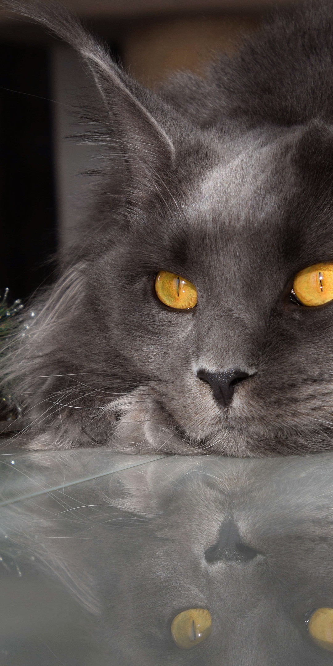 Назад к обои зима, кошка, кот, взгляд, морда, свет, отражение, темный фон