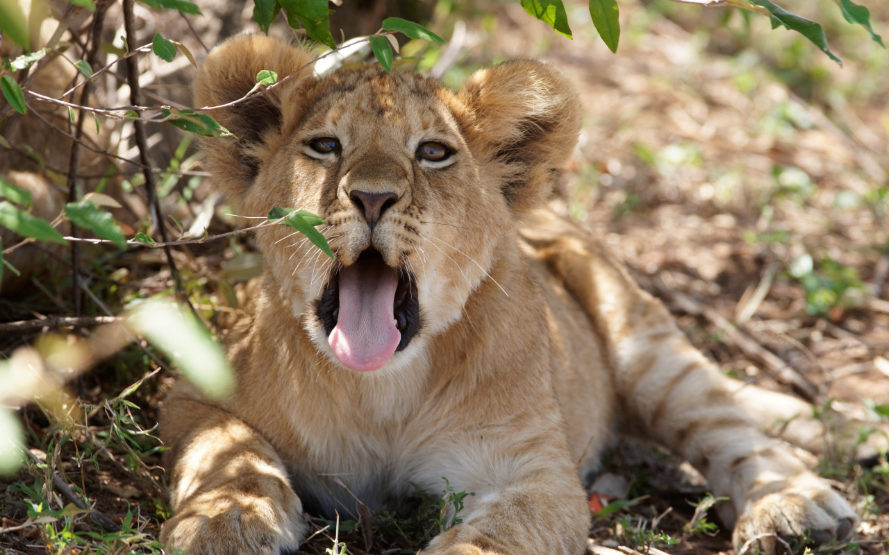 Назад к обои язык, трава, взгляд, ветки, отдых, тень, лев, детёныш